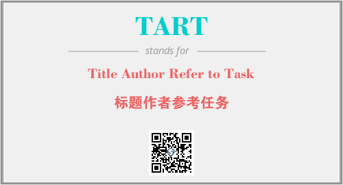 上述内容是“Title Author Refer to Task”作为“TART”的缩写,解释为“标题作者参考任务”时的信息,以及英文缩略词TART所代表的英文单词,其对应的中文拼音、详细解释以及在英文中的流行度和相关分类、应用领域及应用示例等。