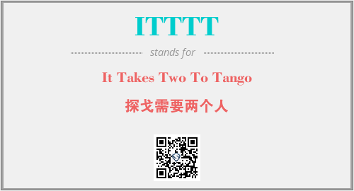 英文缩略词“ITTTT”经常作为“It Takes Two To Tango”的英文缩写来使用,中文表示:“探戈需要两个人”。本文将详细介绍英文缩写词ITTTT所代表英文单词,其对应的中文拼音、详细解释以及在英语中的流行度。此外,还有关于缩略词ITTTT的分类、应用领域及相关应用示例等。