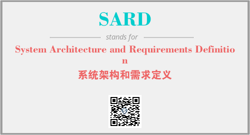 上述内容是“System Architecture and Requirements Definition”作为“SARD”的缩写,解释为“系统架构和需求定义”时的信息,以及英文缩略词SARD所代表的英文单词,其对应的中文拼音、详细解释以及在英文中的流行度和相关分类、应用领域及应用示例等。