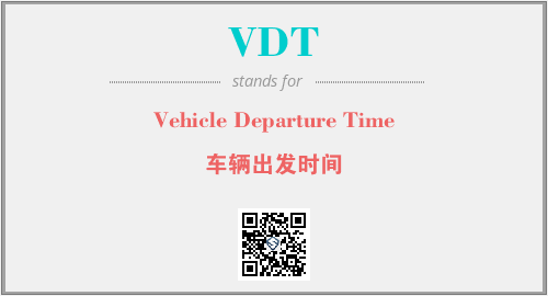 英文缩略词“VDT”经常作为“Vehicle Departure Time”的英文缩写来使用,中文表示:“车辆出发时间”。本文将详细介绍英文缩写词VDT所代表英文单词,其对应的中文拼音、详细解释以及在英语中的流行度。此外,还有关于缩略词VDT的分类、应用领域及相关应用示例等。