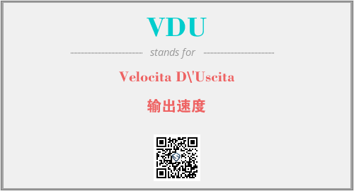 英文缩略词“VDU”经常作为“Velocita D\'Uscita”的英文缩写来使用,中文表示:“输出速度”。本文将详细介绍英文缩写词VDU所代表英文单词,其对应的中文拼音、详细解释以及在英语中的流行度。此外,还有关于缩略词VDU的分类、应用领域及相关应用示例等。