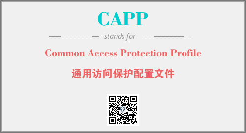 上述内容是“Common Access Protection Profile”作为“CAPP”的缩写,解释为“通用访问保护配置文件”时的信息,以及英文缩略词CAPP所代表的英文单词,其对应的中文拼音、详细解释以及在英文中的流行度和相关分类、应用领域及应用示例等。