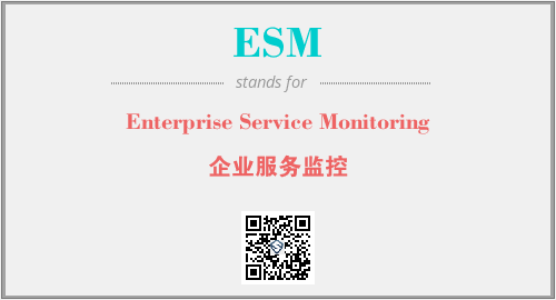 英文缩略词“ESM”经常作为“Enterprise Service Monitoring”的英文缩写来使用,中文表示:“企业服务监控”。本文将详细介绍英文缩写词ESM所代表英文单词,其对应的中文拼音、详细解释以及在英语中的流行度。此外,还有关于缩略词ESM的分类、应用领域及相关应用示例等。