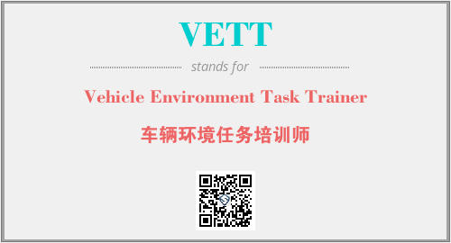 以上为Vehicle Environment Task Trainer英文缩略词VETT的中文解释,以及该英文缩写在英语的流行度、分类和应用领域方面的信息。