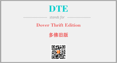 上述内容是“Dover Thrift Edition”作为“DTE”的缩写,解释为“多佛旧版”时的信息,以及英文缩略词DTE所代表的英文单词,其对应的中文拼音、详细解释以及在英文中的流行度和相关分类、应用领域及应用示例等。