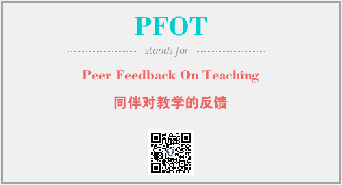 以上为Peer Feedback On Teaching英文缩略词PFOT的中文解释,以及该英文缩写在英语的流行度、分类和应用领域方面的信息。