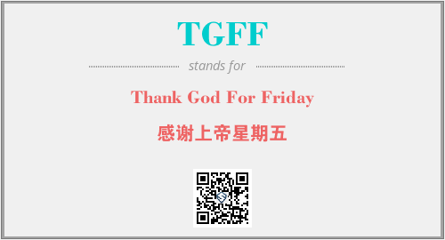 英文缩略词“TGFF”经常作为“Thank God For Friday”的英文缩写来使用,中文表示:“感谢上帝星期五”。本文将详细介绍英文缩写词TGFF所代表英文单词,其对应的中文拼音、详细解释以及在英语中的流行度。此外,还有关于缩略词TGFF的分类、应用领域及相关应用示例等。