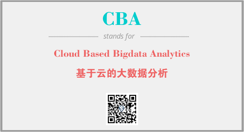 上述内容是“Cloud Based Bigdata Analytics”作为“CBA”的缩写,解释为“基于云的大数据分析”时的信息,以及英文缩略词CBA所代表的英文单词,其对应的中文拼音、详细解释以及在英文中的流行度和相关分类、应用领域及应用示例等。