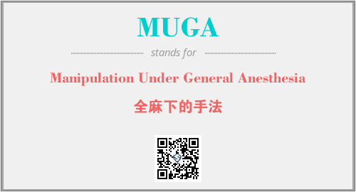 英文缩略词“MUGA”经常作为“Manipulation Under General Anesthesia”的英文缩写来使用,中文表示:“全麻下的手法”。本文将详细介绍英文缩写词MUGA所代表英文单词,其对应的中文拼音、详细解释以及在英语中的流行度。此外,还有关于缩略词MUGA的分类、应用领域及相关应用示例等。