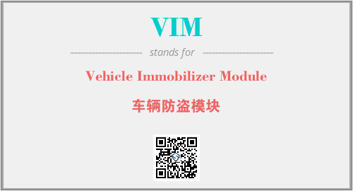 上述内容是“Vehicle Immobilizer Module”作为“VIM”的缩写,解释为“车辆防盗模块”时的信息,以及英文缩略词VIM所代表的英文单词,其对应的中文拼音、详细解释以及在英文中的流行度和相关分类、应用领域及应用示例等。