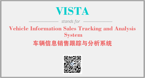 上述内容是“Vehicle Information Sales Tracking and Analysis System”作为“VISTA”的缩写,解释为“车辆信息销售跟踪与分析系统”时的信息,以及英文缩略词VISTA所代表的英文单词,其对应的中文拼音、详细解释以及在英文中的流行度和相关分类、应用领域及应用示例等。