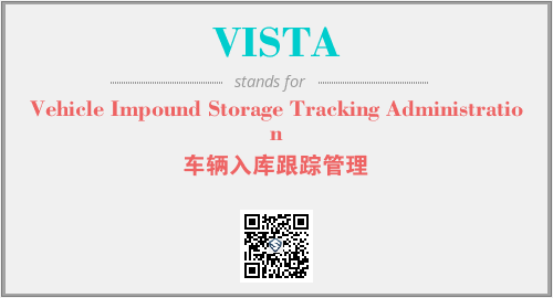以上为Vehicle Impound Storage Tracking Administration英文缩略词VISTA的中文解释,以及该英文缩写在英语的流行度、分类和应用领域方面的信息。