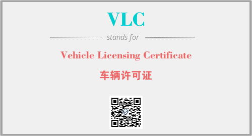 上述内容是“Vehicle Licensing Certificate”作为“VLC”的缩写,解释为“车辆许可证”时的信息,以及英文缩略词VLC所代表的英文单词,其对应的中文拼音、详细解释以及在英文中的流行度和相关分类、应用领域及应用示例等。