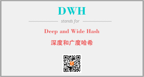 上述内容是“Deep and Wide Hash”作为“DWH”的缩写,解释为“深度和广度哈希”时的信息,以及英文缩略词DWH所代表的英文单词,其对应的中文拼音、详细解释以及在英文中的流行度和相关分类、应用领域及应用示例等。