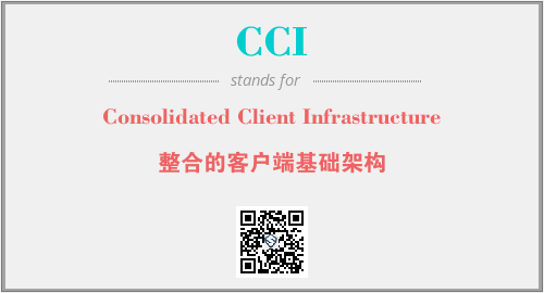 上述内容是“Consolidated Client Infrastructure”作为“CCI”的缩写,解释为“整合的客户端基础架构”时的信息,以及英文缩略词CCI所代表的英文单词,其对应的中文拼音、详细解释以及在英文中的流行度和相关分类、应用领域及应用示例等。