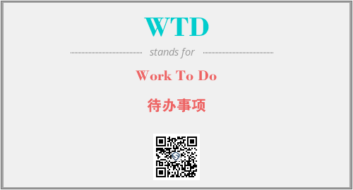 英文缩略词“WTD”经常作为“Work To Do”的英文缩写来使用,中文表示:“待办事项”。本文将详细介绍英文缩写词WTD所代表英文单词,其对应的中文拼音、详细解释以及在英语中的流行度。此外,还有关于缩略词WTD的分类、应用领域及相关应用示例等。