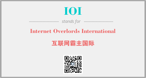 英文缩略词“IOI”经常作为“Internet Overlords International”的英文缩写来使用,中文表示:“互联网霸主国际”。本文将详细介绍英文缩写词IOI所代表英文单词,其对应的中文拼音、详细解释以及在英语中的流行度。此外,还有关于缩略词IOI的分类、应用领域及相关应用示例等。