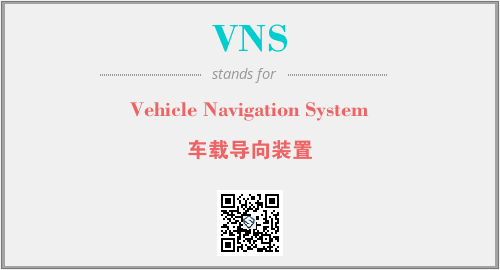 英文缩略词“VNS”经常作为“Vehicle Navigation System”的英文缩写来使用,中文表示:“车载导向装置”。本文将详细介绍英文缩写词VNS所代表英文单词,其对应的中文拼音、详细解释以及在英语中的流行度。此外,还有关于缩略词VNS的分类、应用领域及相关应用示例等。
