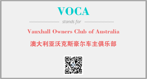 上述内容是“Vauxhall Owners Club of Australia”作为“VOCA”的缩写,解释为“澳大利亚沃克斯豪尔车主俱乐部”时的信息,以及英文缩略词VOCA所代表的英文单词,其对应的中文拼音、详细解释以及在英文中的流行度和相关分类、应用领域及应用示例等。