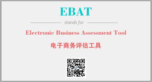 英文缩略词“EBAT”经常作为“Electronic Business Assessment Tool”的英文缩写来使用,中文表示:“电子商务评估工具”。本文将详细介绍英文缩写词EBAT所代表英文单词,其对应的中文拼音、详细解释以及在英语中的流行度。此外,还有关于缩略词EBAT的分类、应用领域及相关应用示例等。