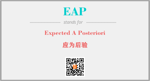 上述内容是“Expected A Posteriori”作为“EAP”的缩写,解释为“应为后验”时的信息,以及英文缩略词EAP所代表的英文单词,其对应的中文拼音、详细解释以及在英文中的流行度和相关分类、应用领域及应用示例等。
