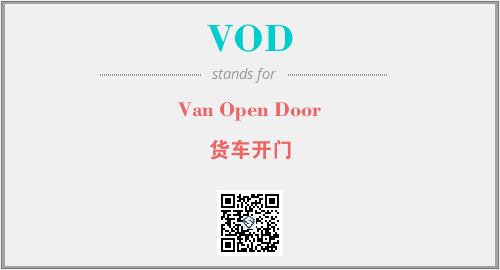 英文缩略词“VOD”经常作为“Van Open Door”的英文缩写来使用,中文表示:“货车开门”。本文将详细介绍英文缩写词VOD所代表英文单词,其对应的中文拼音、详细解释以及在英语中的流行度。此外,还有关于缩略词VOD的分类、应用领域及相关应用示例等。