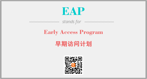 英文缩略词“EAP”经常作为“Early Access Program”的英文缩写来使用,中文表示:“早期访问计划”。本文将详细介绍英文缩写词EAP所代表英文单词,其对应的中文拼音、详细解释以及在英语中的流行度。此外,还有关于缩略词EAP的分类、应用领域及相关应用示例等。