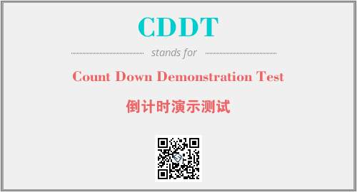 英文缩略词“CDDT”经常作为“Count Down Demonstration Test”的英文缩写来使用,中文表示:“倒计时演示测试”。本文将详细介绍英文缩写词CDDT所代表英文单词,其对应的中文拼音、详细解释以及在英语中的流行度。此外,还有关于缩略词CDDT的分类、应用领域及相关应用示例等。