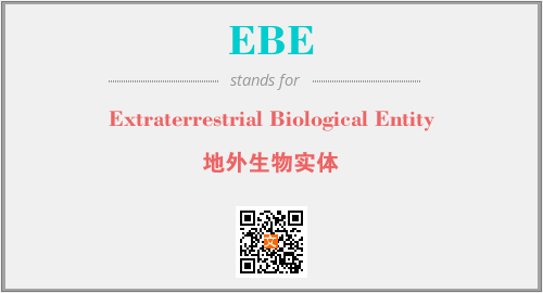 英文缩略词“EBE”经常作为“Extraterrestrial Biological Entity”的英文缩写来使用,中文表示:“地外生物实体”。本文将详细介绍英文缩写词EBE所代表英文单词,其对应的中文拼音、详细解释以及在英语中的流行度。此外,还有关于缩略词EBE的分类、应用领域及相关应用示例等。