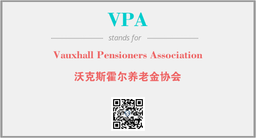 以上为Vauxhall Pensioners Association英文缩略词VPA的中文解释,以及该英文缩写在英语的流行度、分类和应用领域方面的信息。