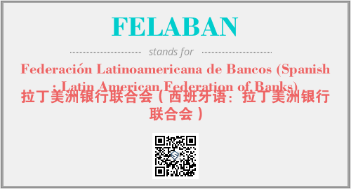 以上为Federación Latinoamericana de Bancos (Spanish: Latin American Federation of Banks)英文缩略词FELABAN的中文解释,以及该英文缩写在英语的流行度、分类和应用领域方面的信息。