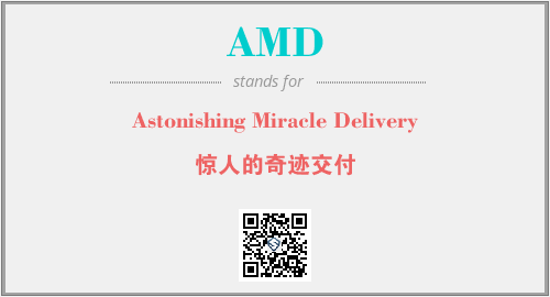 英文缩略词“AMD”经常作为“Astonishing Miracle Delivery”的英文缩写来使用,中文表示:“惊人的奇迹交付”。本文将详细介绍英文缩写词AMD所代表英文单词,其对应的中文拼音、详细解释以及在英语中的流行度。此外,还有关于缩略词AMD的分类、应用领域及相关应用示例等。