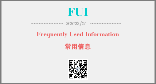 英文缩略词“FUI”经常作为“Frequently Used Information”的英文缩写来使用,中文表示:“常用信息”。本文将详细介绍英文缩写词FUI所代表英文单词,其对应的中文拼音、详细解释以及在英语中的流行度。此外,还有关于缩略词FUI的分类、应用领域及相关应用示例等。