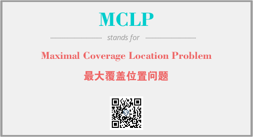 上述内容是“Maximal Coverage Location Problem”作为“MCLP”的缩写,解释为“最大覆盖位置问题”时的信息,以及英文缩略词MCLP所代表的英文单词,其对应的中文拼音、详细解释以及在英文中的流行度和相关分类、应用领域及应用示例等。