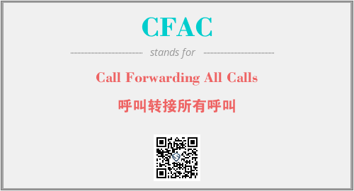 英文缩略词“CFAC”经常作为“Call Forwarding All Calls”的英文缩写来使用,中文表示:“呼叫转接所有呼叫”。本文将详细介绍英文缩写词CFAC所代表英文单词,其对应的中文拼音、详细解释以及在英语中的流行度。此外,还有关于缩略词CFAC的分类、应用领域及相关应用示例等。