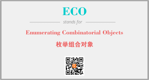 上述内容是“Enumerating Combinatorial Objects”作为“ECO”的缩写,解释为“枚举组合对象”时的信息,以及英文缩略词ECO所代表的英文单词,其对应的中文拼音、详细解释以及在英文中的流行度和相关分类、应用领域及应用示例等。