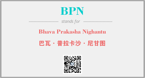 英文缩略词“BPN”经常作为“Bhava Prakasha Nighantu”的英文缩写来使用,中文表示:“巴瓦·普拉卡沙·尼甘图”。本文将详细介绍英文缩写词BPN所代表英文单词,其对应的中文拼音、详细解释以及在英语中的流行度。此外,还有关于缩略词BPN的分类、应用领域及相关应用示例等。