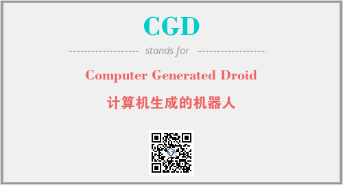 英文缩略词“CGD”经常作为“Computer Generated Droid”的英文缩写来使用,中文表示:“计算机生成的机器人”。本文将详细介绍英文缩写词CGD所代表英文单词,其对应的中文拼音、详细解释以及在英语中的流行度。此外,还有关于缩略词CGD的分类、应用领域及相关应用示例等。