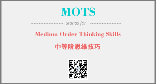 以上为Medium Order Thinking Skills英文缩略词MOTS的中文解释,以及该英文缩写在英语的流行度、分类和应用领域方面的信息。