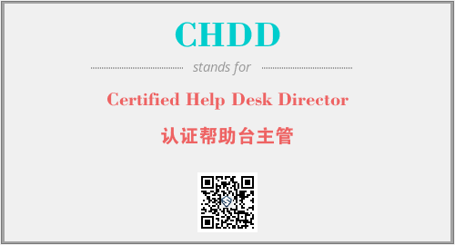 英文缩略词“CHDD”经常作为“Certified Help Desk Director”的英文缩写来使用,中文表示:“认证帮助台主管”。本文将详细介绍英文缩写词CHDD所代表英文单词,其对应的中文拼音、详细解释以及在英语中的流行度。此外,还有关于缩略词CHDD的分类、应用领域及相关应用示例等。