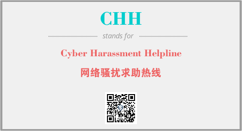上述内容是“Cyber Harassment Helpline”作为“CHH”的缩写,解释为“网络骚扰求助热线”时的信息,以及英文缩略词CHH所代表的英文单词,其对应的中文拼音、详细解释以及在英文中的流行度和相关分类、应用领域及应用示例等。