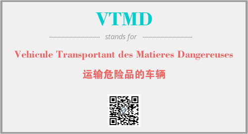英文缩略词“VTMD”经常作为“Vehicule Transportant des Matieres Dangereuses”的英文缩写来使用,中文表示:“运输危险品的车辆”。本文将详细介绍英文缩写词VTMD所代表英文单词,其对应的中文拼音、详细解释以及在英语中的流行度。此外,还有关于缩略词VTMD的分类、应用领域及相关应用示例等。