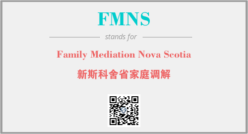 上述内容是“Family Mediation Nova Scotia”作为“FMNS”的缩写,解释为“新斯科舍省家庭调解”时的信息,以及英文缩略词FMNS所代表的英文单词,其对应的中文拼音、详细解释以及在英文中的流行度和相关分类、应用领域及应用示例等。