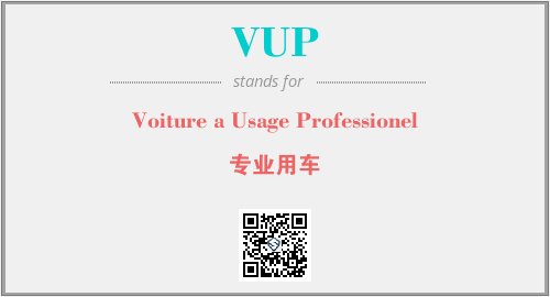 上述内容是“Voiture a Usage Professionel”作为“VUP”的缩写,解释为“专业用车”时的信息,以及英文缩略词VUP所代表的英文单词,其对应的中文拼音、详细解释以及在英文中的流行度和相关分类、应用领域及应用示例等。