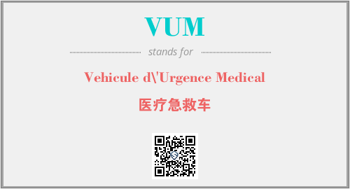以上为Vehicule d\'Urgence Medical英文缩略词VUM的中文解释,以及该英文缩写在英语的流行度、分类和应用领域方面的信息。