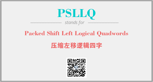 上述内容是“Packed Shift Left Logical Quadwords”作为“PSLLQ”的缩写,解释为“压缩左移逻辑四字”时的信息,以及英文缩略词PSLLQ所代表的英文单词,其对应的中文拼音、详细解释以及在英文中的流行度和相关分类、应用领域及应用示例等。