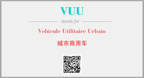 英文缩略词“VUU”经常作为“Vehicule Utilitaire Urbain”的英文缩写来使用,中文表示:“城市商用车”。本文将详细介绍英文缩写词VUU所代表英文单词,其对应的中文拼音、详细解释以及在英语中的流行度。此外,还有关于缩略词VUU的分类、应用领域及相关应用示例等。