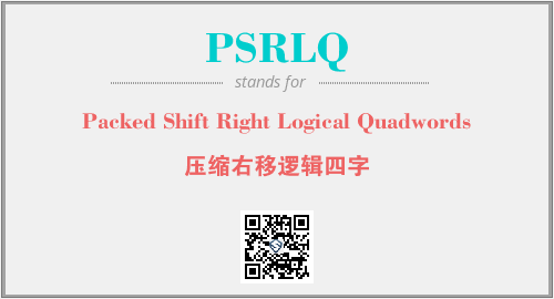 以上为Packed Shift Right Logical Quadwords英文缩略词PSRLQ的中文解释,以及该英文缩写在英语的流行度、分类和应用领域方面的信息。