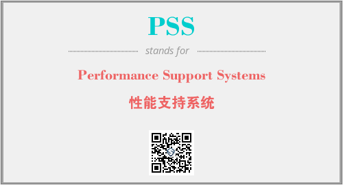 英文缩略词“PSS”经常作为“Performance Support Systems”的英文缩写来使用,中文表示:“性能支持系统”。本文将详细介绍英文缩写词PSS所代表英文单词,其对应的中文拼音、详细解释以及在英语中的流行度。此外,还有关于缩略词PSS的分类、应用领域及相关应用示例等。