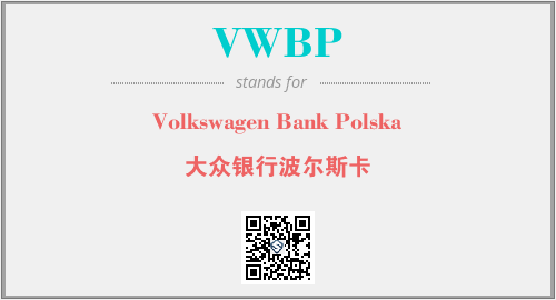 英文缩略词“VWBP”经常作为“Volkswagen Bank Polska”的英文缩写来使用,中文表示:“大众银行波尔斯卡”。本文将详细介绍英文缩写词VWBP所代表英文单词,其对应的中文拼音、详细解释以及在英语中的流行度。此外,还有关于缩略词VWBP的分类、应用领域及相关应用示例等。